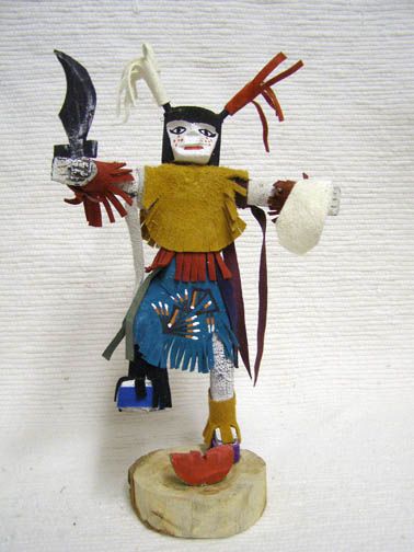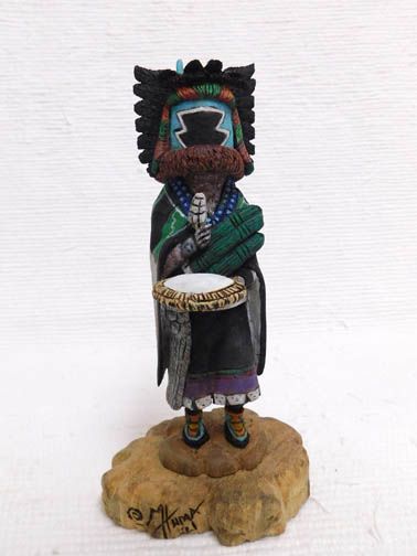 Hopi (Katsinam) kachinas are crafted to acknowledge celestial beings, significant animals to the Hopi people, and the ancestors who help with their harvest, raising their spirits as well as raising their children. Hopi kachinas are hand carved from a single cottonwood root and sometime painted with natural dyes in a traditional way.